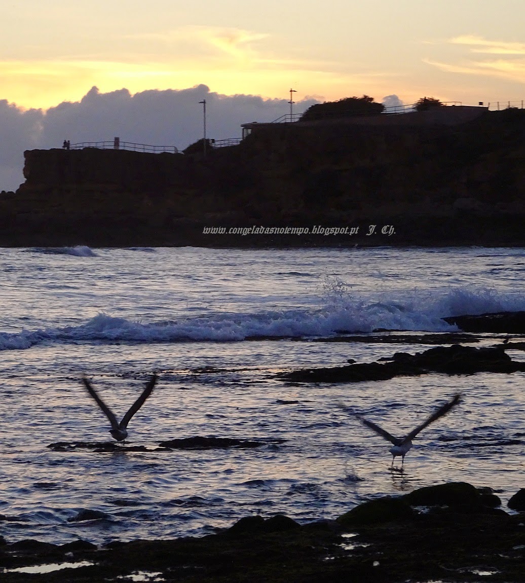Hoje, um fim de tarde na costa do Estoril, com transparências nas águas calmas e quentes (24 graus), cheias de alforrecas e gaivotas a aproveitando o fim do dia, com águas calmas.